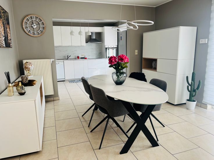 Composé: Hall d'entrée, salon-living, une cuisine équipée, une salle de bain avec douche, deux chambres à coucher, bureau, une cave, un jardin commun et un garage.