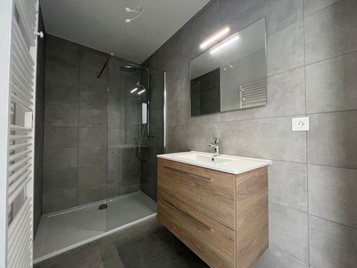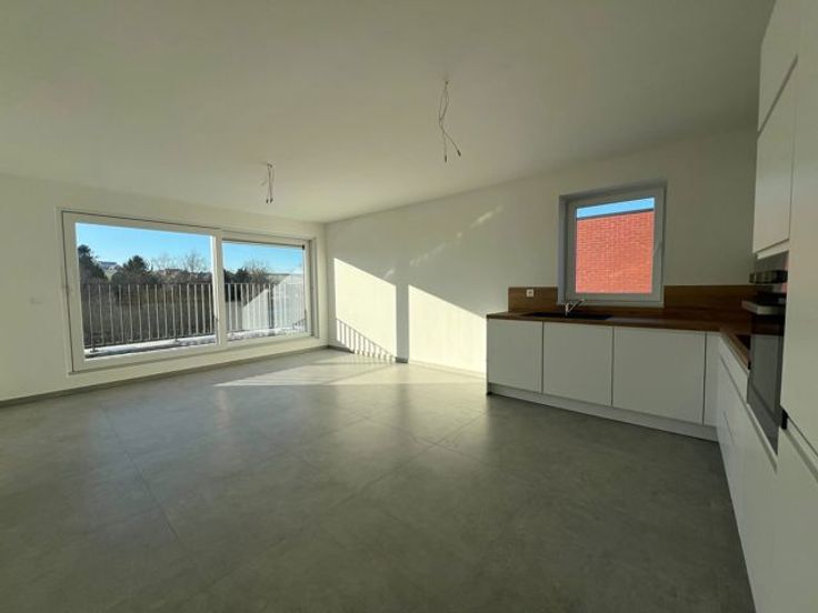 Cet appartement est composé comme suit : un séjour avec cuisine ouverte, 2 chambres, une salle de douche, un wc indépendant ainsi que d’un hall d’entrée et d’une buanderie.