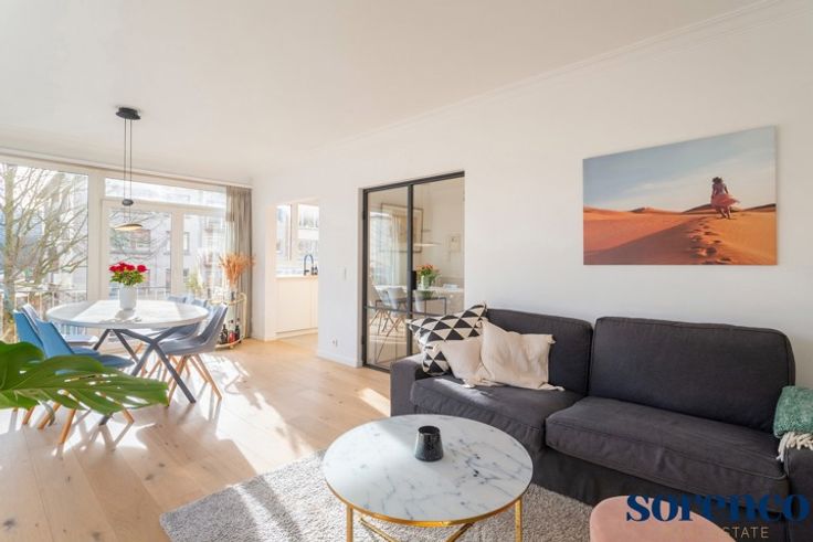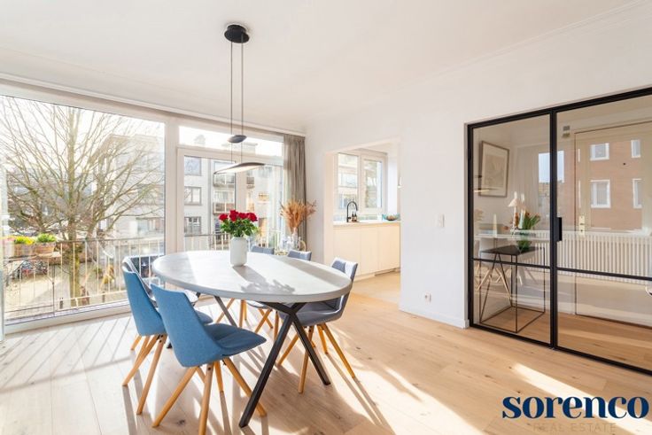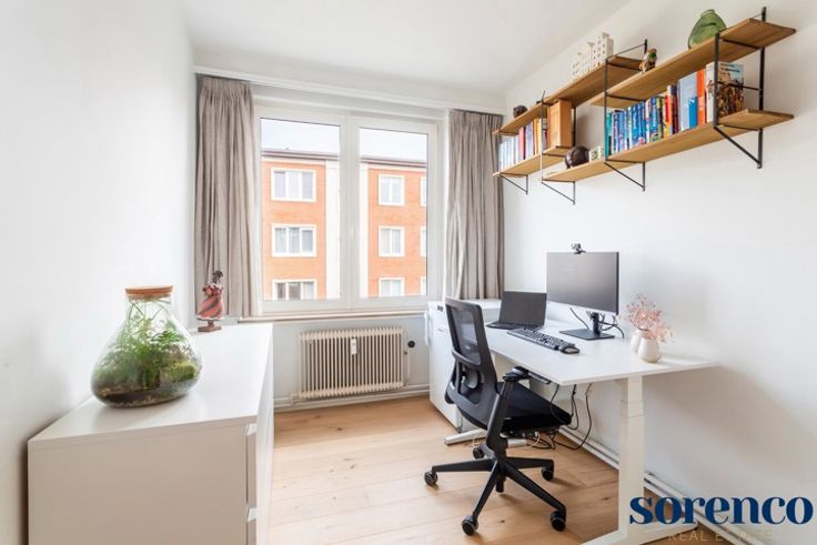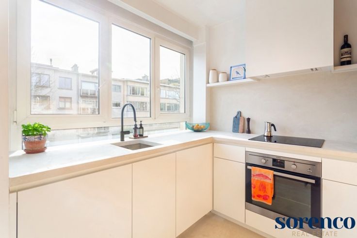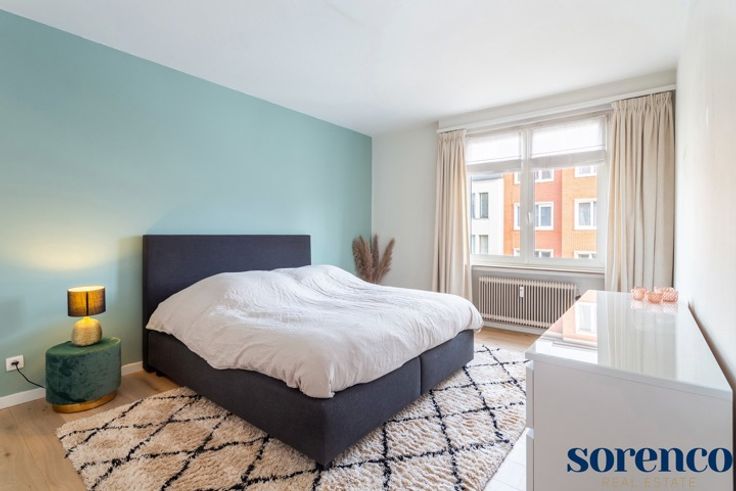 PULHOF - Zeer lichtrijk en recent gerenoveerd 2 slaapkamer hoek-appartement gelegen op de tweede verdieping in een klein gebouw met slechts drie verdiepingen. Dankzij de strategische ligging zijn tal van winkels, het openbaar vervoer, scholen, ziekenhuizen, Brilschanspark en belangrijke in- en uitvalswegen vlot bereikbaar. INDELING: Via de INKOMHAL met vestiaire en gastentoilet betreedt u het appartement. Een smeedijzeren deur leidt naar de lichtrijke LEEFRUIMTE op parket, met aansluitend een zuidoost-georiënteerd terrasje. De open, modern ingerichte KEUKEN is afgewerkt met mortex en voorzien van opbergkasten en alle nodige toestellen. Achteraan bevinden zich twee SLAAPKAMERS op parket namelijk 18,4m² en 10m². De moderne BADKAMER beschikt over een lavabo in meubel en een ruime douche. Aparte berging, garagebox met oprit apart te koop voor €35.000. Dit instapklare appartement combineert charme, lichtinval en een uitstekende ligging! Bijzonderheden: Lift conform, HR-beglazing, EPC 196kWh/m², conforme keuring (2025), nieuwe boiler (2024), videofoon.