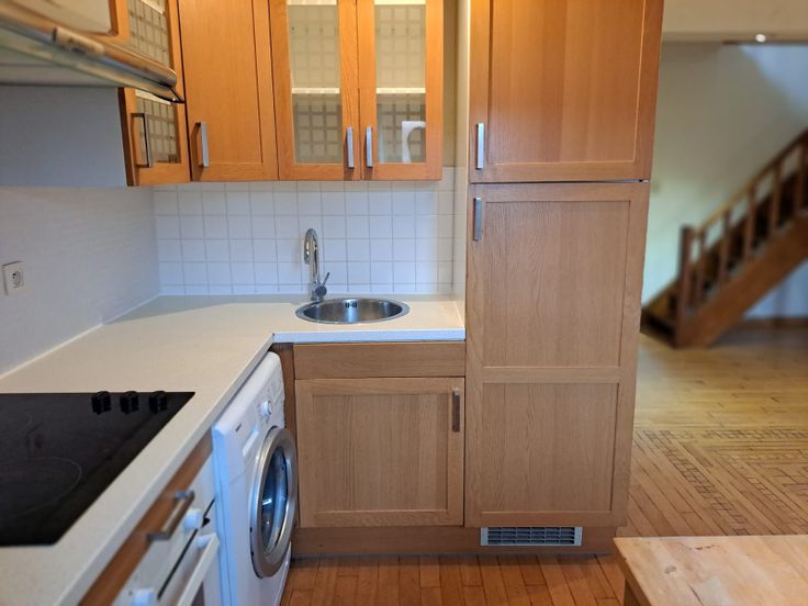 De parketvloer, de deuren, de trap, de keuken zijn van massief hout.