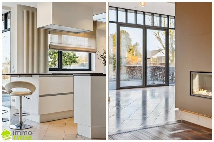 Aansluitend en afgescheiden zijn de privatieven bestaande uit hal-doorloop, apart toilet, woonkamer en zithoek, riante open en modern ogende compleet ingerichte keuken "volkern" met alle aanwezige apparaten (inductie kookplaat, oven, vaatwas, koelkast, stoomoven, ect.) , een bijkeuken met toegang naar de inpandige garage (2-3 wagens), alsook een droge kelder.