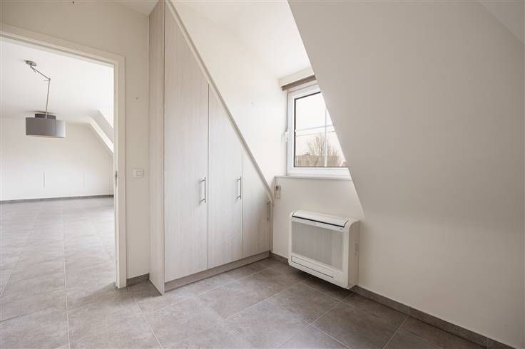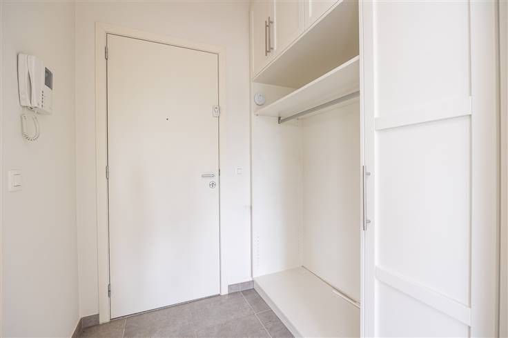 Bij binnenkomst via de inkomhal vindt u meteen de vestiaire en een gastentoilet. De ruime leefruimte geniet van een gunstige oriëntatie, waardoor u op het terras volop van het zonlicht kunt genieten. Zowel de leefruimte als de hoofdslaapkamer zijn voorzien van airconditioning. Alle nutsvoorzieningen zijn individueel en dus voor eigen rekening. De open keuken is uitgerust met de nodige toestellen en ingemaakte kasten. Aansluitend bevindt zich een ruime berging met plaats voor voorraad, een wasmachine en een droogkast. Ook het ventilatiesysteem en de condenserende gasketel zijn hier geïnstalleerd.