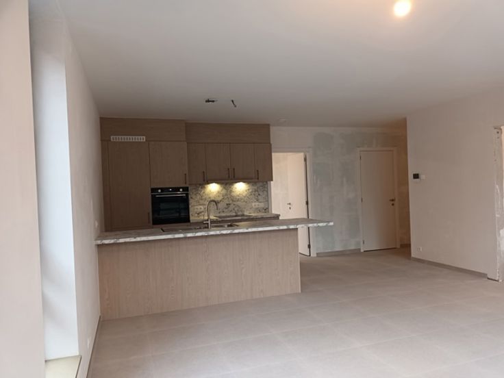 Nieuwbouw appartement op de eerste verdieping INDELING Inkom leefruimte met veel lichtinval en open ingerichte keuken Grote en kleinere slaapkamer Bureau Berging Badkamer met lavabomeubel en inloopdouche Terras met zicht op de parktuin Ondergrondse autostaanplaats en afgesloten berging zijn inbegrepen in de huurprijs Gezamenlijke afgesloten fietsenberging Gezamenlijke parktuin BIJZONDERHEDEN Verwarming met vloerverwarming via warmtepomp (BEN-appartement) Instapklaar (incl. schilderwerken) Algemene maandelijkse kosten : 80 euro/maand Aanvang huur is 1 maart 2025. EPC : A-score, de effectieve berekening volgt na de oplevering van het appartement. POSITIEVE PUNTEN BEN-appartementen (bijna-energieneutraal) Veel lichtinval dankzij ligging op hoek van gebouw Zicht op parktuin 2 slaapkamers (grote en kleinere) + bureau Huurprijs is inclusief autostaanplaats en berging