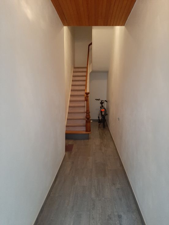 Goed gelegen gerenoveerd, licht en luchtig appartement op de eerste verdieping. 1 slaapkamer (14m²) en 1 kleine kamer (6m²) geschikt voor logeerkamer, dressing of bureau. Living met open keuken in L-vorm, betegelde vloer, aansluiting voor TV en internet en parlofoon. Keuken voorzien van spoelbak, gasvuur met dampkap, oven, combi-ijskast met diepvriezer. Betegelde WC met handwasser. Betegelde badkamer, hoekbad met douchegelegenheid, badkamermeubel, plaats voor wasmachine en droogkast. Klein terras met berging en uitzicht op tuin. Kelder (5m²). Individuele nutsmeters (gas, elektriciteit, water). Centrale verwarming op gas (Condensatieketel). Dak, voor- en achtergevel recent vernieuwd en geïsoleerd volgens de nieuwste normen. Ramen met dubbele beglazing. Betegelde vloeren in keuken, living, WC en badkamer, andere kamers voorzien van laminaat.