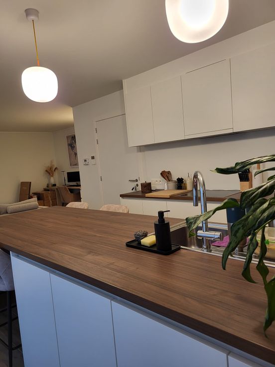 Gelegen pal in het centrum van Lochristi, opgeleverd in 2023 : geothermische warmtepomp, zonnepanelen per appartement. Inkom, prachtige keuken met keukeneiland, volledig geïnstalleerd met oven, kookplaat, dampkap, koelkast, vaatwas, alles merk Siemens, verlichtingsarmaturen aangebracht met Lightpoint, geschilderd en alle kamers zijn voorzien van gordijnen en verlichting. 1 slaapkamer, badkamer met dubbele wastafelmeubel en douche. heel ruime berging, toilet. Het terras is uitzonderlijk groot en zuidgericht ! De ramen zijn vierseizoensglas. Bovengrondse overdekte staanplaats, ondergrondse privé berging. Aparte fietsenberging. De buitenparkeerplaatsen zijn volledig afgesloten. Mogelijkheid tot huur van extra buitenparking. Lift in het gebouw.