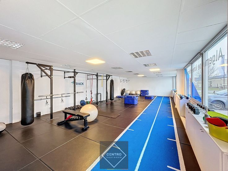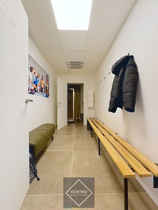 Inkom via dubbele glazen deur - open handelsruimte - afzonderlijk bureel - sanitaire ruimte (kleedkamer met douche en lavabo) - afzonderlijk toilet - berging.