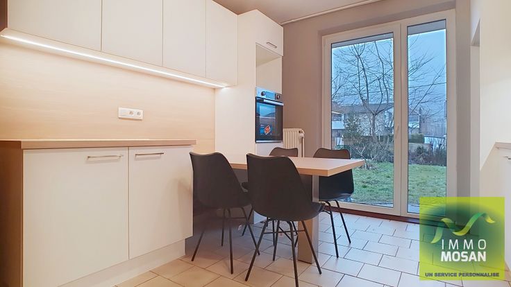 A deux pas du centre de Malmedy et face au complexe commercial de l'avenue des Alliés, très bel appartement 2 chambres de 95 m², nouvellement rénové, avec jardin privatif et 2 places de parking : hall ( 18 m² ) pouvant servir d'espace bureau, nouvelle cuisine équipée ( évier, hotte aspirante, lave-vaisselles, four traditionnel, taque vitro-céramique, table fixe avec 4 chaises...), salle-de-bains avec douche, meuble évier 2 tiroirs, armoire miroir 2 portes avec éclairage et deux meubles-colonnes de rangement, séjour avec tentures, chambres de 15 et 11,5 m² avec rideaux, luminaires dans la majorité des pièces... Chauffage individuel au gaz, jardin privatif de +/- 120 m², abri de jardin, grenier mis à disposition ( 10 m² ). Dans le jardin, un nouvel abri va être installé avec notamment des prises pour recharger des vélos électriques... Les charges mensuelles de 25 € couvrent l'électricité des communs, l'assurance incendie du bâtiment, l'entretien de la chaudière ainsi que celui des parkings. Renseignements et visites : Michel Lejeune 0477/ 41 86 45