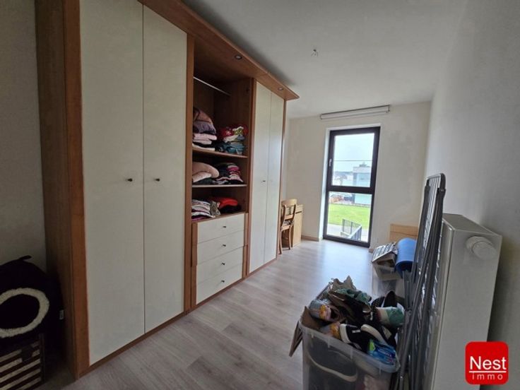 Zeer aangenaam recent ( 2015) appartement gelegen in een zeer rustige residentiële wijk. Het appartement is gelegen in een zeer kleine mede-eigendom op het eerste verdiep ( er is geen 2de verdieping) bereikbaar via de trapzaal of de lift. Het apprtement is super goed geisoleerd (Epeil 48) en is verbruikszuinig. Individuele verwarming op gas (condensatieketel).De indeling is als volgt : inkom, open hyper uitgeruste US keukn, living met toegang tot half overdekt  terras ( 9m²)., nachthal, aprt toilet, berging/wasplaats, badkamer ( ligbad/douche/lavabg) en twee slaapkamers. Er hoort nog een grote kelder erbij en een staanplaats. Geografisch goed gelegen in nabijheid van de Ring. Vrij vanaf : 01/04.