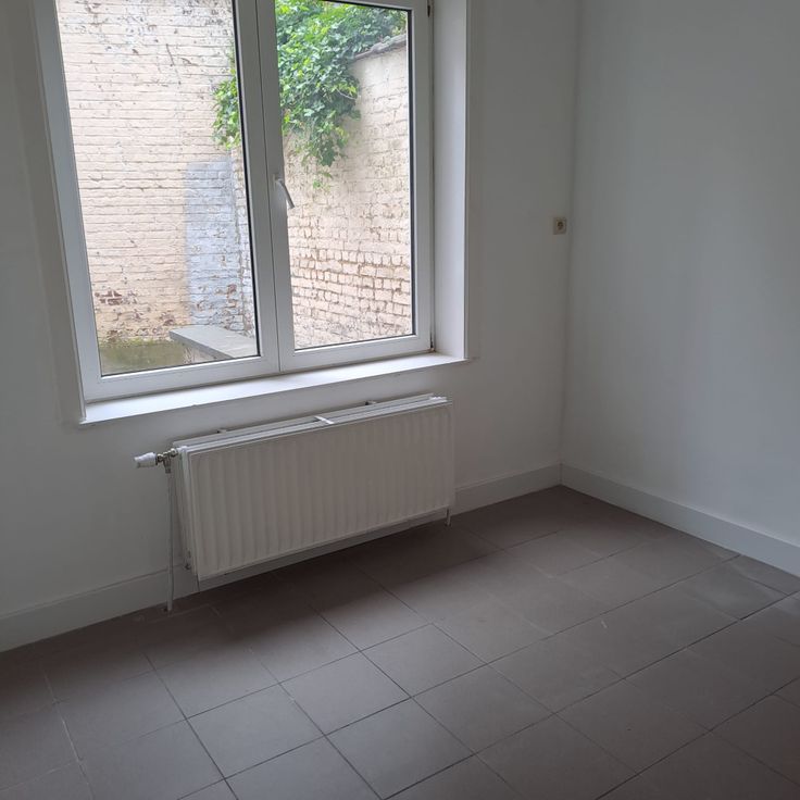 Appartement au RDC rénové avec living, salle de douche, une terrasse / cour extérieure, une chambre, une grande buanderie et une cave.