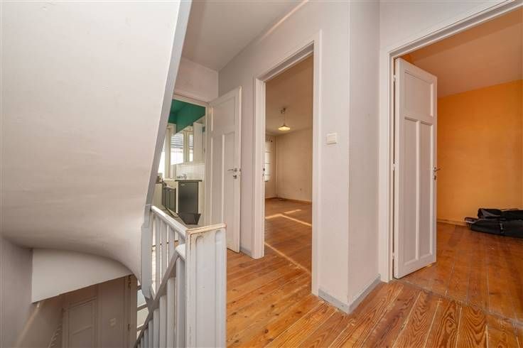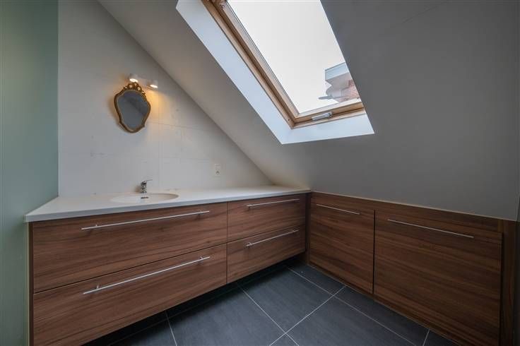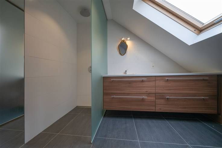 Eerste verdieping (83m2): nachthall (1m90x3m20) en (1m05x0m65) met vaste trap naar de zolder, slaapkamer 1 (3m90x4m65), slaapkamer 2 (3m30x4m25), slaapkamer 3 (2m55x3m00), badkamer 1 (1m85x2m20) met ligbad, meubel met wastafel en WC, slaapkamer 4 (1m90x7m20) met aanpalende badkamer, gerenoveerde badkamer 2 (1m90x1m90) met inloopdouche en meubel met wastafel