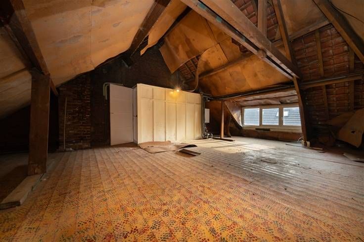 Zolder (43m2): te bereiken via een vaste trap, in te richten zolderruimte met de stookketel