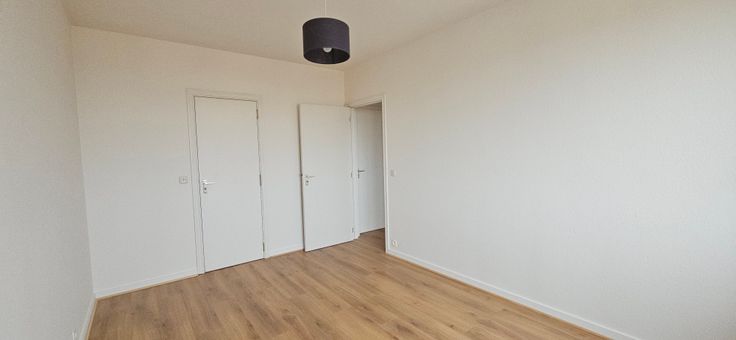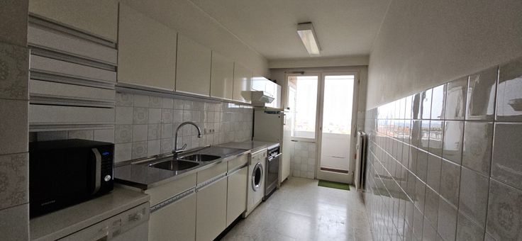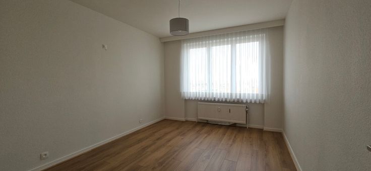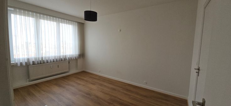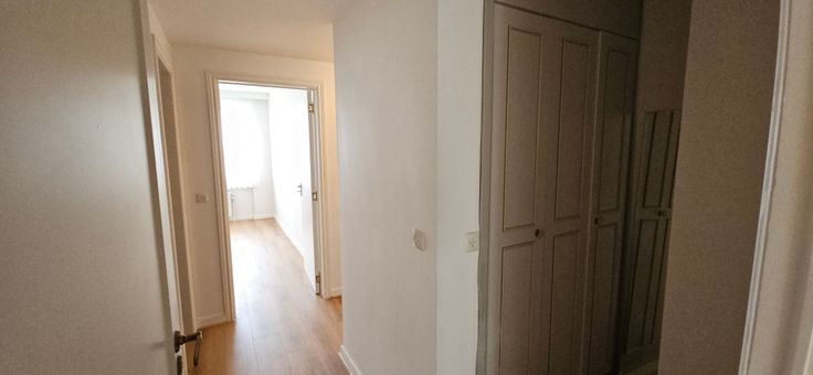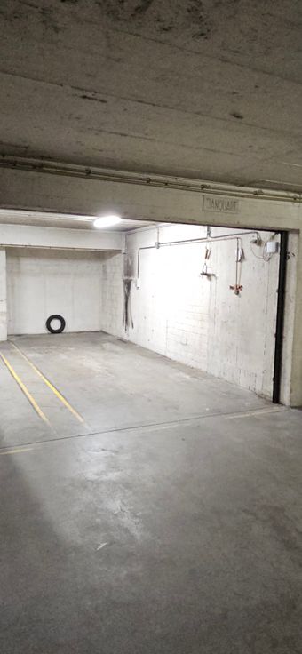 L’appartement est accessible par ascenseur et également équipé d’une petite cave +-2m² et d’un emplacement de parking sécurisé par une porte sectionnelle.