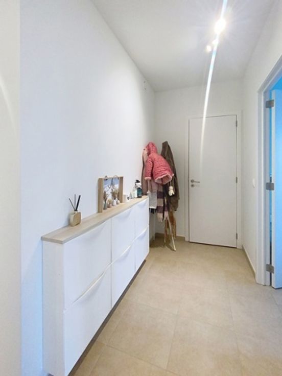 Nieuwbouwappartement nabij het Neerpedepark dat bestaat uit een inkomhal, aparte wc, een woon- en eetruimte (28m²) met een volledig geïnstalleerde open keuken (combi oven/microgolfoven, koelkast, vaatwasser, vitrokeramische kookplaat) die toegang geeft tot het zonneterras (13m²) met uitzicht op de binnentuin, 2 slaapkamers (14m² en 11m²), een badkamer met ligbad en dubbele lavabo en een wasruimte/berging.