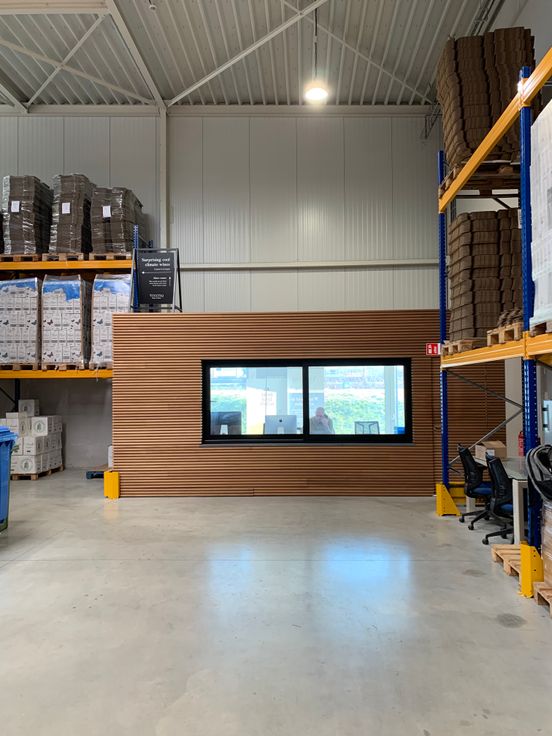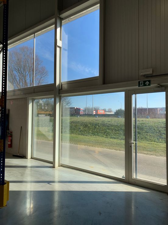 Gezellig kantoor, electrische verwarmd en LED verlicht met zicht op de E17.