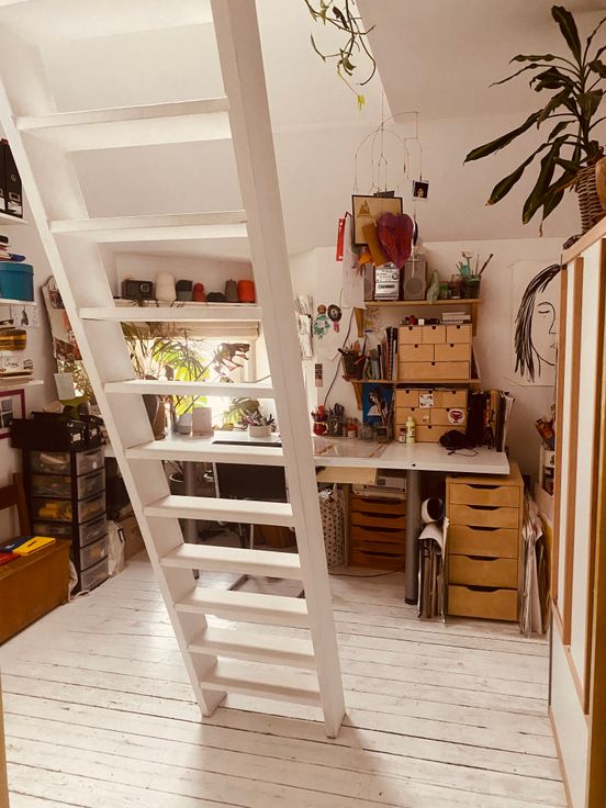 Op het tweede verdieping bevindt zich een tweede slaapkamer (15m2) en een grote werkkamer/slaapkamer (20m2). Via de trap kom je nog op een kleine zolder.