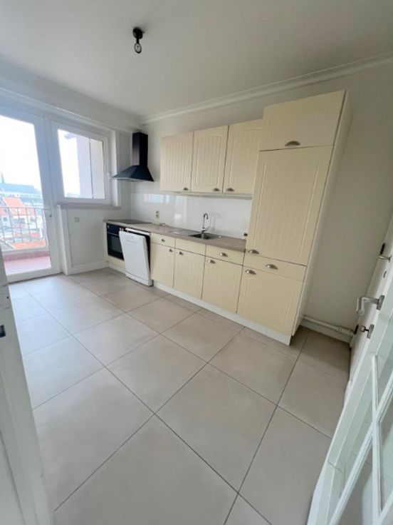 VRIJ RUIM EN LICHTRIJK APPARTEMENT 4 de verd.met lift ruime inkomhal, dub deur naar lichtrijke living in parket nette keuken in cottage stijl, berging, terras met berging 2 ruime slaapkamers, gerenoveerde badkamer met inloopdouche recente boiler,recente ramen EPC 255 Eventueel overdekte staanplaats bij te kopen of te huren in het gebouw syndic kosten slechts 65 euro   Renovatieplicht: onbekend
