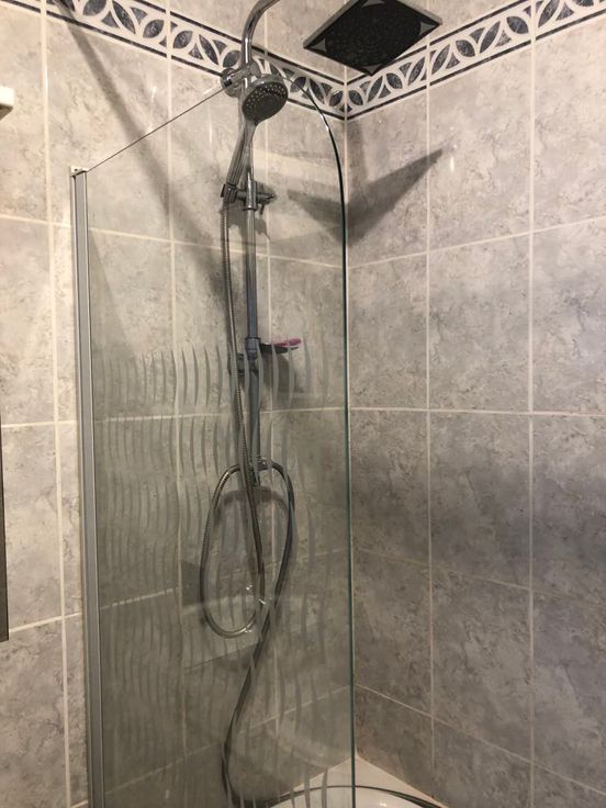 Een veranda met toegang tot de badkamer en de 2 slaapkamers.