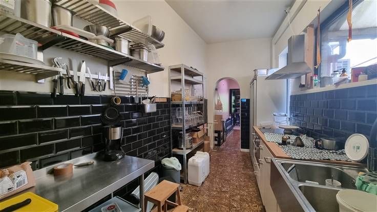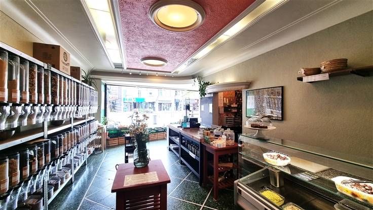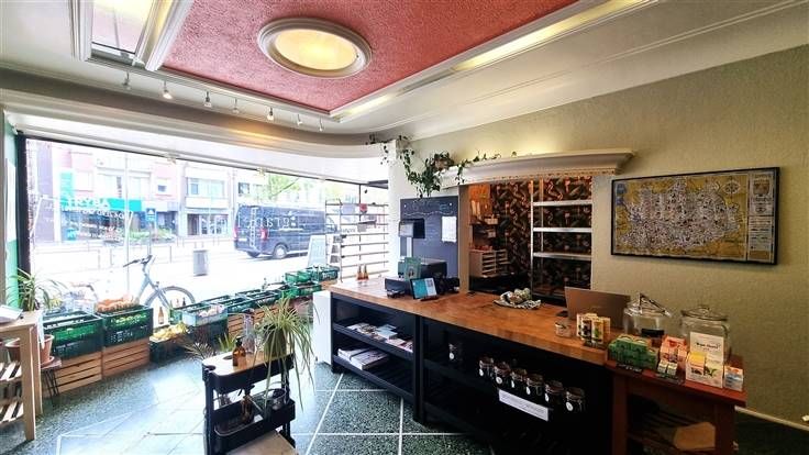 Het pand bestaat uit een grote ruimte vooraan, evenwaardige ruimte achteraan, die toegang geeft tot terras en tuin. Vanuit de winkel is de kelder te bereiken.