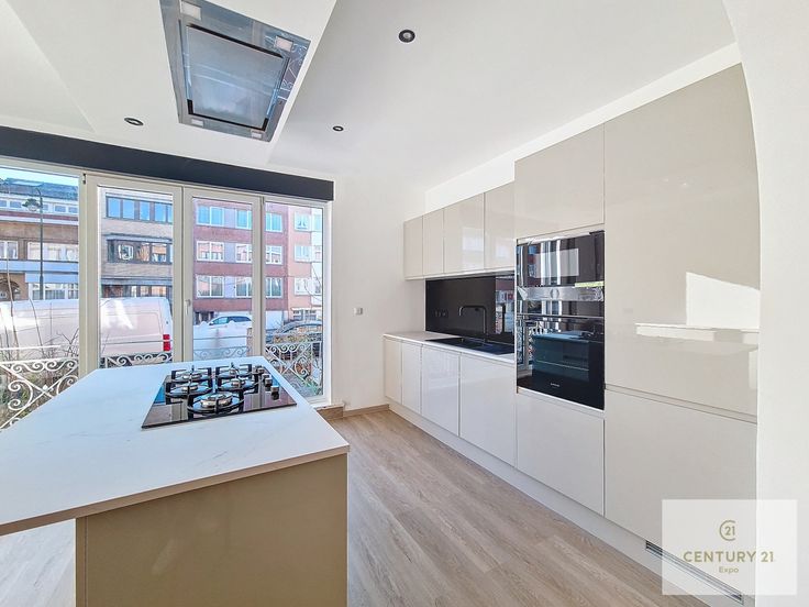 **Gelegen op het gelijkvloers van een kleine mede-eigendom in de wijk van de Pagodenlaan, op wandelafstand van winkels, openbaar vervoer en alle andere voorzieningen, biedt CENTURY 21 De Wand u dit prachtige appartement van 100m² aan.** Het appartement werd volledig gerenoveerd in een moderne stijl en bestaat uit: - **Inkomhal** met videofoon. - **Ruime woonkamer** van 34m² met een open, volledig uitgeruste keuken. - **Nachtgang** die toegang biedt tot: - Een inloopdouche. - Een apart toilet. - Twee grote slaapkamers. - **Veranda** met toegang tot een prachtige **privétuin van 175m²**. **Extra's:** - Kelder. - Individuele gascondensatieketel. - Kamerthermostaat. - Nieuwe elektrische installat ie. - PVC-ramen met hoogrendement dubbel glas en elektrische rolluiken. **Meer informatie of een bezoek? Contacteer ons kantoor via 02/269 32 22.** Gelijkvloers: Slaapkamer, Slaapkamer, Keuken, Badkamer(s), Veranda(s),,,,, . Kelderverdieping: Kelder . Grond: Tuin . Uitrusting van keuken: Diepvrieskast, Gas fornuis, Oven, Microgolfoven, Koelkast, Wasemkap, Vaatwasmachine, Keuken meubelen . Elektrische uitrusting: Kabel TV, Intercom, Telefoon, Thermostaat, Videophone, Elektrische blinden . Andere uitrusting: Dubbele beglazing, Gepantserde deur, Waterafvoersystemen,, . Vensters: PVC . :, : 63 Kg Co2m²an, : 317 Kwh . Grond: Betegelen, Gelamineerde bevloering . Muurbekleding: Schilderij . Diensten: Autoweg, Bus: m, Winkelce