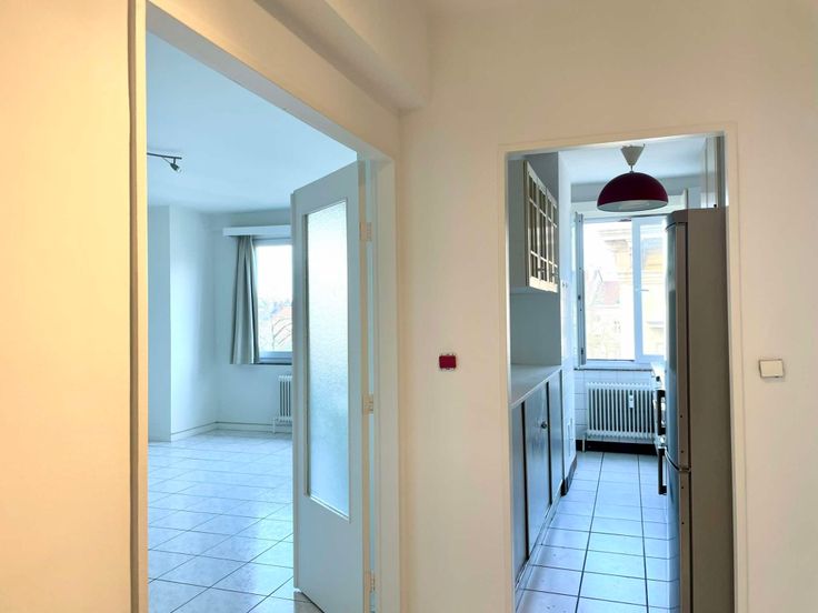 Situation super centrale et très recherchée pour ce magnifique appartement au 3ème/12étages - très lumineux, aux volumes généreux. Il se situe à proximité du métro, de la rue haute, du marché du Parvis et de beaucoup d'autres commodités attractives. Entre le Sablon, l'avenue Louise et la gare du Midi. L'appartement est agencé comme suit: Hall d'entrée, grand living offrant une belle vue, cuisine équipée (frigo, taque, four, hotte, armoires) séparée mais pourrait s'ouvrir sur la pièce de vie, 2 grandes chambres (17m² et 18m²) dont 1 avec grand placard/dressing et un balcon arrière de 4 m², salle de bains avec espace buanderie, wc séparé. Double Vitrage partout. Electricité conforme. L'appartement est en très bon état mais mériterait un petit rafraichissement. Cave. Local à vélos. Au pied du métro Porte de Hal, des trams 4/10, Bus W/123/365A. Gare du Midi à 400m.Nos publicités ne sont pas contractuelles et n'engagent d'aucune façon nos commettants. Visites : info@aidb.be