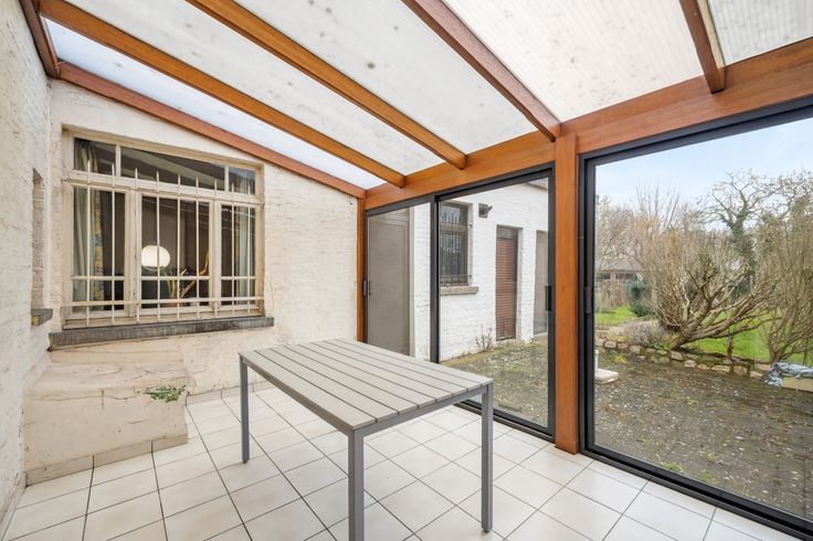 Bij binnenkomst via de inkomhal is er toegang tot een eerste kamer, die perfect kan dienen als bureau, speelkamer of extra slaapkamer. De leefruimte is ruim en geniet van veel natuurlijke lichtinval. Aansluitend bevindt zich de veranda, die een mooi uitzicht biedt op de tuin en extra ruimte creëert. De aparte keuken grenst aan de veranda. Verder is er op het gelijkvloers een badkamer met basisvoorzieningen.