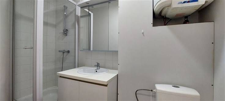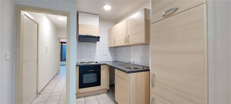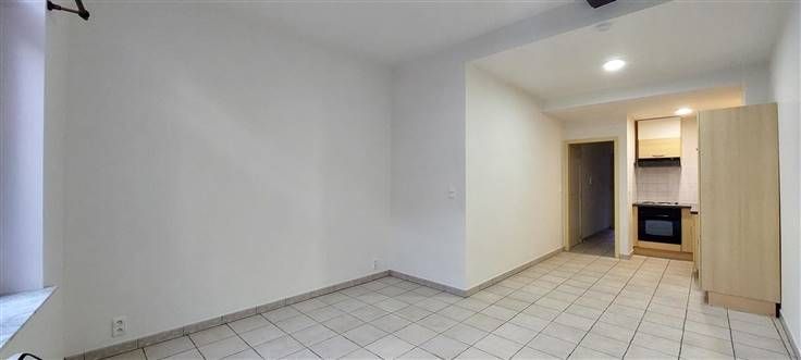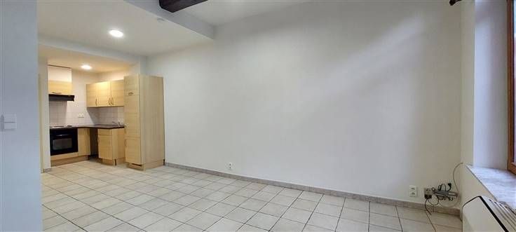 1er étage : Hall d'entrée (+/- 3 m²), living avec coin cuisine équipée- évier simple bacs - taques électriques - hotte - four - frigo - (+/- 21 m²), salle de douche avec WC (+/- 4 m²), 1 chambre (+/-13 m²),