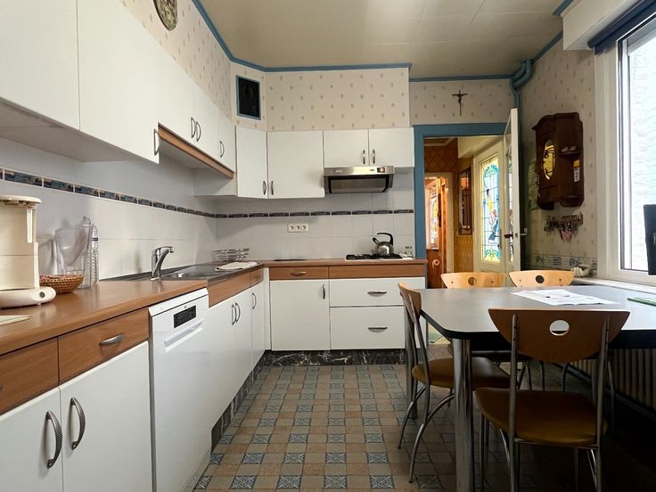 Bij het betreden van de woning kom je binnen in de inkomhal, vanwaar je zowel naar de leefruimte als naar de trap naar het eerste verdiep kunt gaan. De ruime, lichtrijke leefruimte geniet van veel natuurlijk licht. De woning is uitgerust met centrale verwarming op stookolie. Aansluitend aan de leefruimte bevindt zich een kleine berging en de ruime, uitgeruste keuken. Via een gang bereik je de wasruimte, waar de elektrische boiler voor warm water hangt, evenals de andere technische installaties. Vanuit deze gang heb je toegang tot de droge kelder. Ook hier is een trap die leidt naar de eerste verdieping. Op dit niveau bevinden zich 3 ruime slaapkamers en de badkamer. Verder is er een vaste trap naar de zolder, waar er nog een slaapkamer is. Aansluitend aan de zolder is er nog een extra ruimte. Achter de woning bevindt zich nog een mini-atlelier/hobbyruimte met 2 ramen voorzien van dubbele beglazingen een ruime tuin.