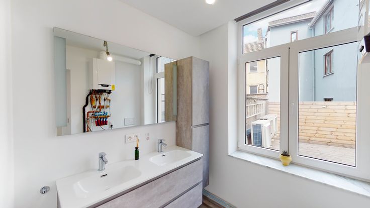 Composition: Situé au premier étage d'une petite copropriété sans ascenseur et entièrement rénovée, magnifique appartement composé d'un hall d'entrée, séjour avec cuisine ouverte entièrement équipée, une chambre, un bureau (ou deuxième chambre) une salle de bain avec douche et WC, buanderie, WC séparé et terrasse de +/-30 m². Particularité: Excellente situation, centre-ville de Liège, quartier en plein expansion, développement des nouveaux projets Noshaq (Fiacre, ...) et proche de toutes commodités (commerces, écoles, bus, gare accessibles à pied). Rénovation de qualité, double vitrage, nouvelles installations de chauffage et électrique (conformes), système VMC, vidéophonie, énergies séparées. PEB de classe B.
