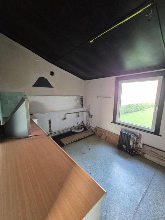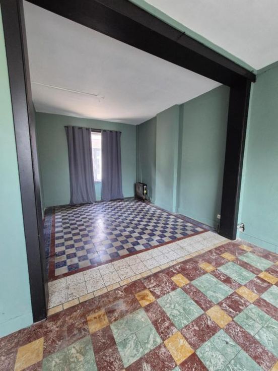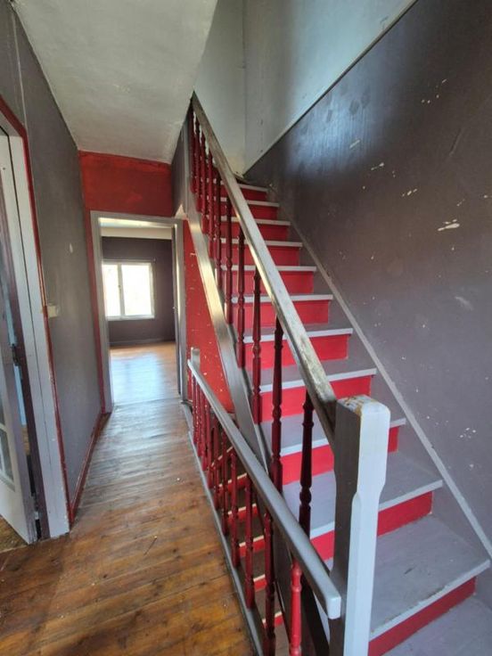 Composition: Sous-sol: cave Rez-de-chaussée: hall d'entrée, salon, séjour, cuisine ,salle de bains. Etage: deux chambres. 2e étage: grenier aménagé. Equipements: cour, portail d'entrée sur le passage latéral, châssis en PVC et alu, toiture à revoir,, électricité à refaire, chauffage par convecteurs.