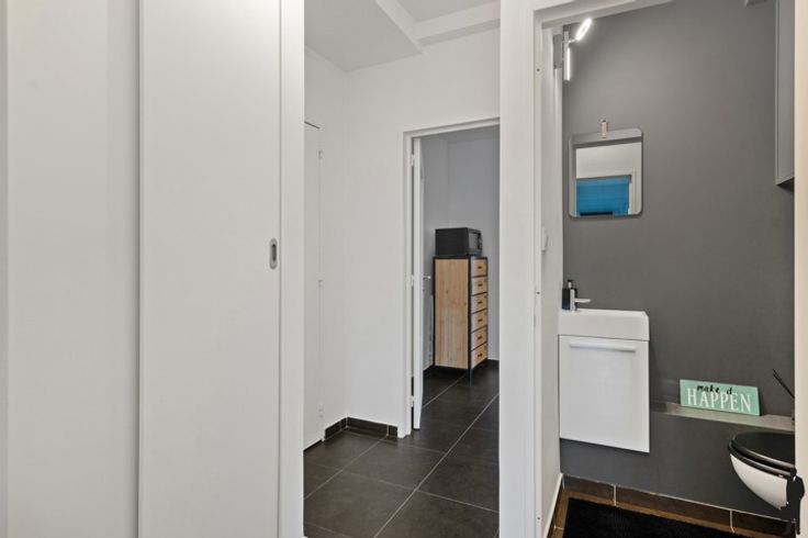 Instapklaar appartement met terrasje in Borsbeek Dit sfeervolle eenslaapkamerappartement is ideaal gelegen in een rustige buurt, met een uitstekende bereikbaarheid van invalswegen, openbaar vervoer en winkels. Het appartement beschikt over veel natuurlijk licht, wat zorgt voor een aangename en warme sfeer in elke kamer. Indeling: - Inkomhal - Ruime leefruimte met keuken - Badkamer met douche - Toilet - Slaapkamer met toegang tot terras Bijzonderheden: - Mobiscore 8,8/10 - EPC B met score van 144kWh/(m² jaar) - Dak is geïsoleerd - Dubbele beglazing met PVC schrijnwerk - Ruimte voor wasmachine en droogkast in de badkamer - Algemene kosten bedragen maar ca. €70,00 euro/maand