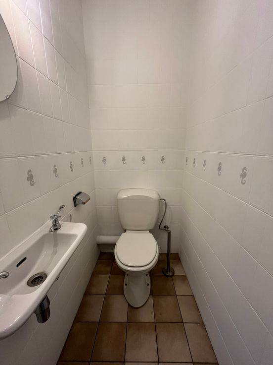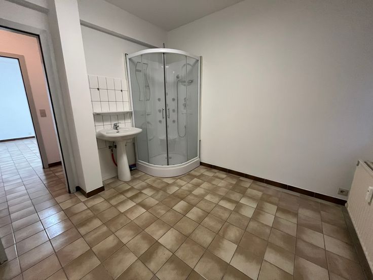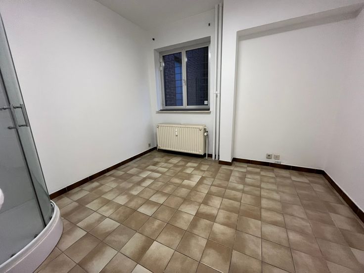 Ce bureau vous offre une première pièce de +- 15m², un bureau de +-20m², un WC séparé avec lave-mains et une arrière pièce disposant d'une cabine de douche et d'un meuble évier.