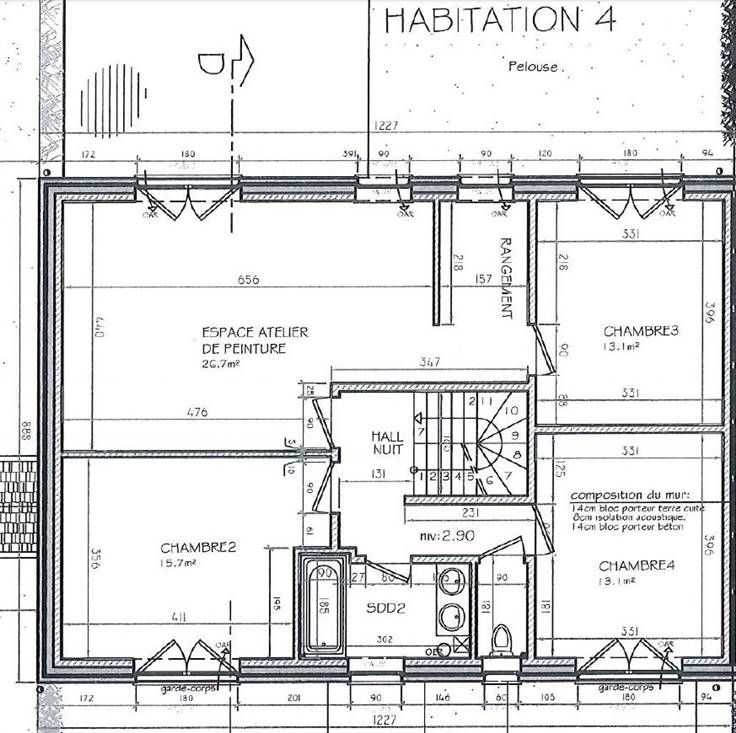 La maison H4 (hors grenier : sup. brute +/- 212 m² & sup. habitable +/- 176) se compose comme suit :