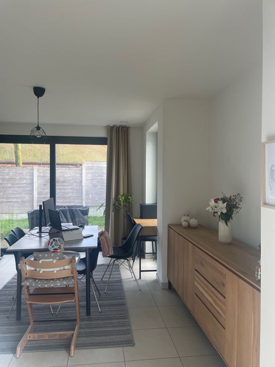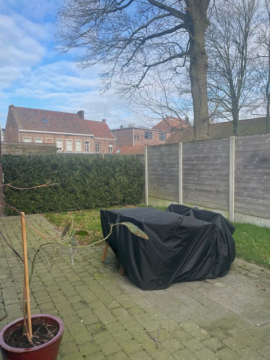 Deze woning ligt op wandelafstand van handelszaken en openbaar vervoer en beschikt over een oprit voor 2 wagens, een private tuin met terras en een tuinberging. De leefruimte met direct toegang naar de tuin heeft een open keuken met keukeneiland en aansluitend een berging/wasplaats. In de inkomhal is er een gastentoilet en een comfortabele trap naar de verdieping. Er zijn 2 slaapkamers, de badkamer heeft een ligbad, douche en dubbel lavabomeubel. Op de verdieping is er een extra bergruimte, ook de zolder is toegankelijk. De woning is beschikbaar op 01/05/2025. Te bezichtigen op afspraak. Erkend makelaar BIV 505.470. Kandidaten zich melden per mail : mieke.geirnaert@yahoo.com