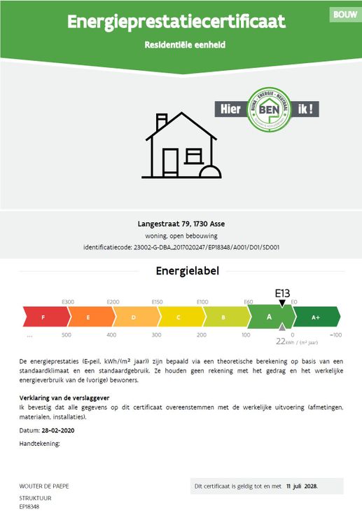 Deze recente houtskeletwoning beschikt over alle moderne technieken (warmtepomp met vloerverwarming, ventilatie type D, zonnepanelen, laadpaal, regenwaterput 10.000L). Gezien BEN-woning = zeer lage energiekosten (<100 euro/maand).