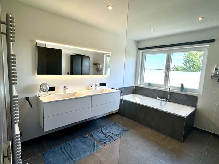 VERDIEPING:Master bedroom met op maat gemaakte dressing. Vanuit de master bedroom heb je een zicht op de nabijgelegen groen.2 aparte slaapkamers. Ruime badkamer met dubbele lavabo, inloopdouche en ligbad.Apart toilet.Berging.