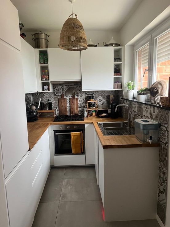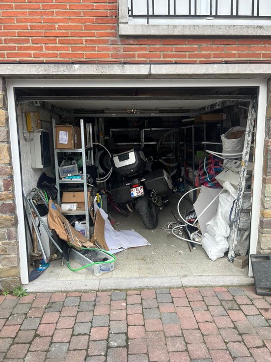 La maison dispose d’un garage (1 voiture) et il y a moyen de garer des véhicules devant le garage.