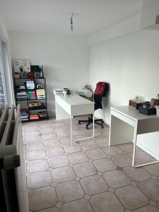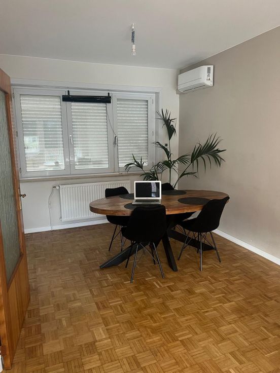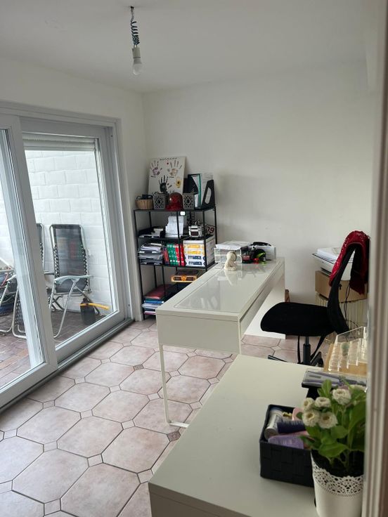 Au rez-de chaussée elle se compose d'un hall d'entrée de ±11 m² avec sa toilette de service, d'un bureau de ±10 m² donnant sur le jardin, d'une chaufferie et d'une buanderie. Au 1e étage, elle se compose d'un agréable séjour de ±30 m² et d'une cuisine entièrement équipée et rénovée. Au 2e étage se trouve les trois chambres et une salle de bain avec toilette (tout a été rénovée en début 2024).