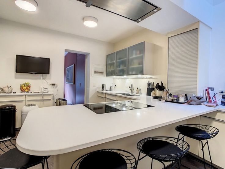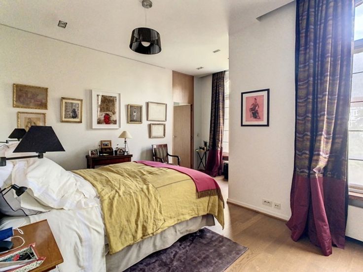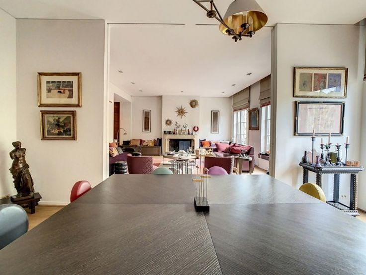 Gerenoveerd appartement op de 2e verdieping van een Hôtel de Maître in Beaux-Arts stijl. Het bestaat uit een prachtige woonkamer met uitzicht op de abdij, een bibliotheek/studeerkamer, een aparte eetkamer, een volledig uitgeruste keuken (oven, stoomoven, magnetron, Amerikaanse koelkast, koffiezetapparaat, vaatwasser, wijnkelder), drie slaapkamers en twee badkamers (elk met bad en aparte douche), kleedkamer, wasruimte met wasmachine en droger. Kelder. Mooie parketvloer en veel natuurlijk licht. Mogelijkheid om een appartement van 80 m2 op de begane grond te kopen.