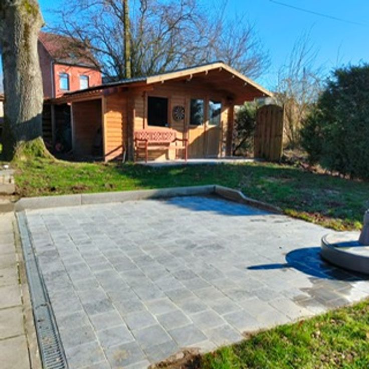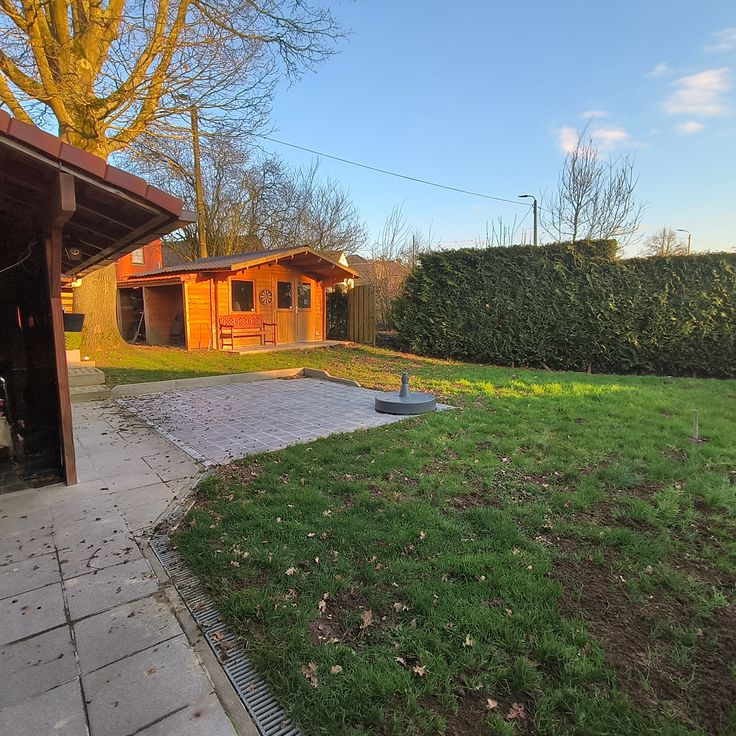 Een groot tuinhuis ter beschikking.