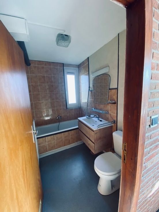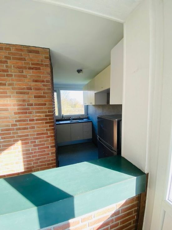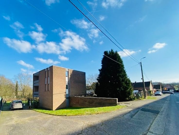 Appartement 2 chambres avec balcon au deuxième étage, cuisine semi équipée, living avec balcon, débarras, sdb, buanderie, local de chaufferie, hall commun avec entrée privée pour chaque logement.