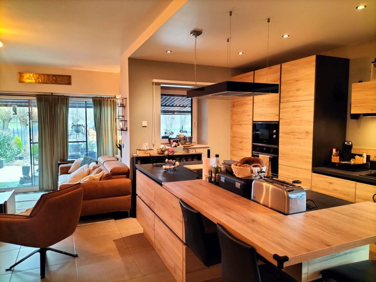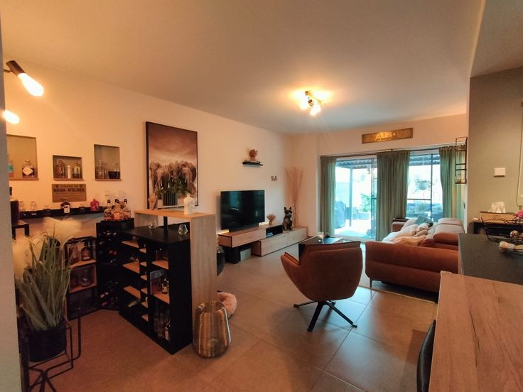 Au rez de chaussée, un hall d'entrée, un WC, un garage, une buanderie, un vaste living et une cuisine américaine super équipée.