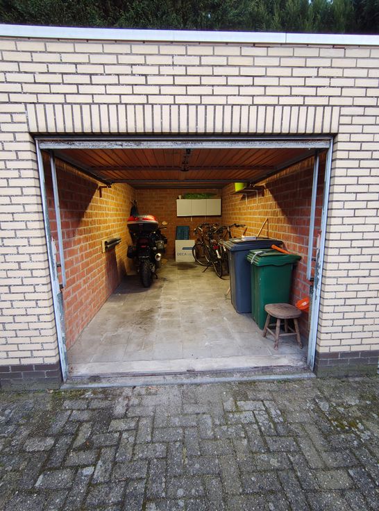 Er is een bovengrondse garagebox, met stopcontact en verlichting aanwezig, dewelke verplicht bij aan te kopen is aan €16.000.