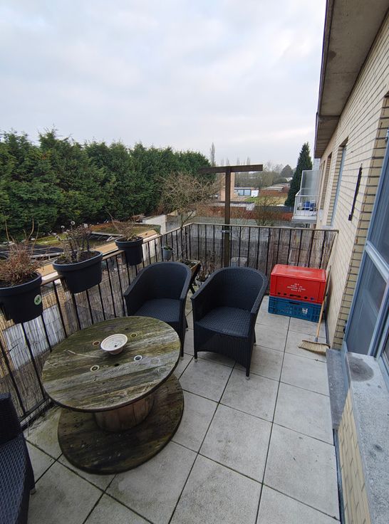 Vanuit de gemeenschappelijke traphal betreed je het appartement via de inkomhal. Daarna kom je in de ruime woon- en eetkamer terecht, dewelke beschikt over een grote raampartij. Vanuit de eetkamer kom je in de volledig uitgeruste keuken terecht. Aan de andere kant van de woonkamer kom je via de hal, voorbij de ruime berging, badkamer, aparte WC, in de 2 grote slaapkamers. Vanuit de ene slaapkamer is er toegang tot een aangenaam terras van 8m2 met uitzicht op bomen.