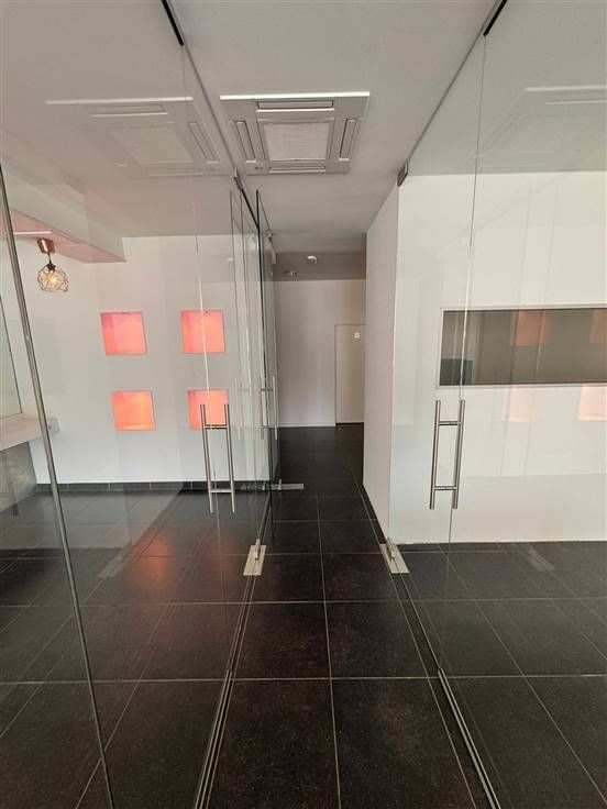 Dit pand, ingericht als kapper en schoonheidssalon, direct beschikbaar. Het is verdeeld in twee aparte ruimtes, gescheiden door dubbel glas,