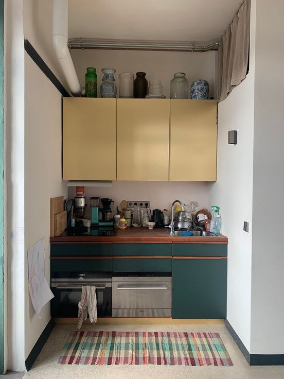 Magnifique cuisine équipée ultra compacte (four, lave-vaisselle, induction). https://designwithsense.be/portfolio/aurelie-thomas/