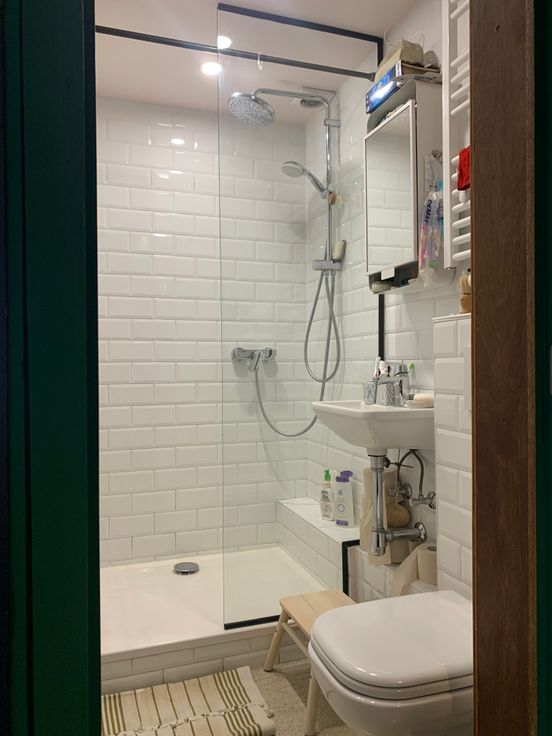Une salle de douche avec wc et lavabo