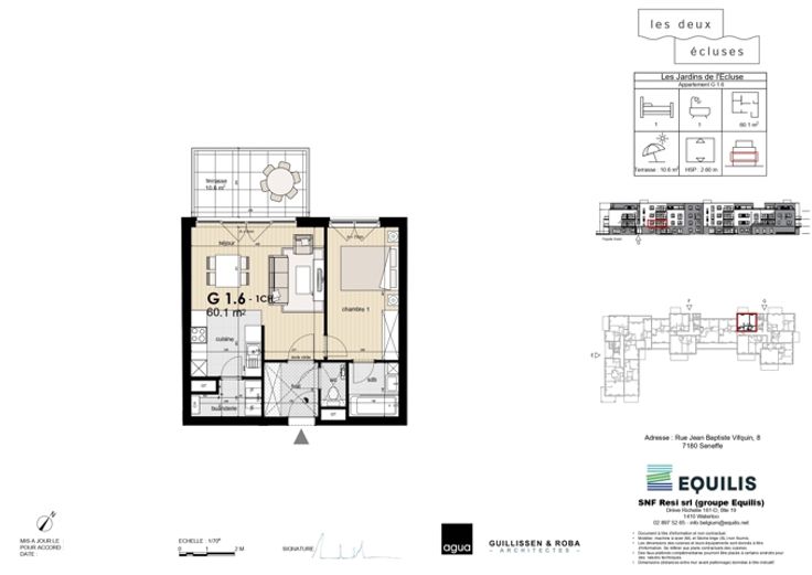 HOUSY vous propose dans un ensemble de 92 appartements neufs, situés à Seneffe, dans un cadre unique, au bord de l’eau, logé entre l’ancien canal et le RAVeL, un appartement une chambre situé au premier étage. Ces logements offrent à la fois une tranquillité toute champêtre et une accessibilité optimale. Proche des commerces, écoles, axes routiers et transports en commun. Immeubles de 3 étages. Chaque appartement aura sa terrasse privative, une cave (5.000€ htva en supplément) et un parking souterrain (20.000€ htva en supplément). Prix : 206.000€ Htva. Renseignements : HOUSY 067/70.01.70 - info@housy.be.
