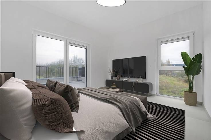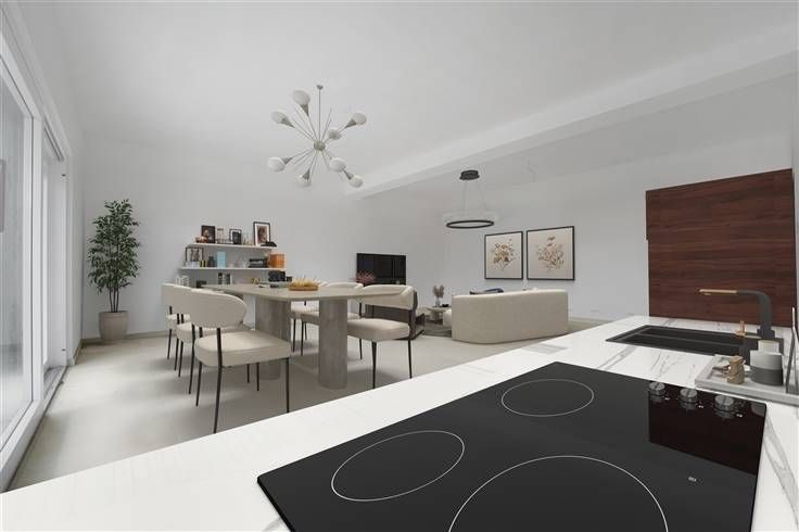 Sorry er is geen nederlandse vertaling beschikbaar. Spacieux appartement de 128 m² situé au 1er étage d'une nouvelle résidence de 14 logements, idéalement implantée à Rocourt, face à la galerie commerciale Cora et à proximité de toutes les commodités. Particularités : terrasse bien orientée, 3 chambres, cave, pompe à chaleur (air/eau) avec chauffage par le sol, châssis PVC double vitrage, VMC simple flux. Livré clé sur porte avec des finitions de qualité (hors cuisine, à charge de l'acquéreur). Jardin commun. Ascenseur. Immeuble bien isolé, à faibles charges énergétiques. Parking non couvert en supplément (+8.500 €). Régime TVA à 6 %, sous réserve de conditions.