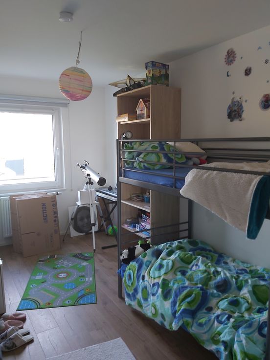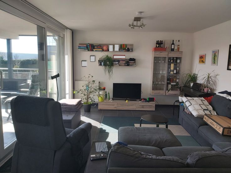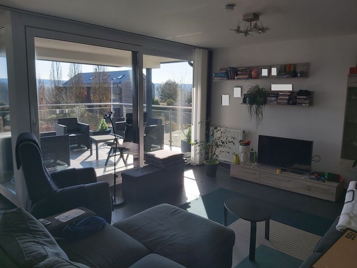 gr. Eingangsdiele, helles Wohn-Esszimmer mit fantastischem Weitblick und großem Südbalkon (ca. 15 qm), in den Wohnraum integrierte Küchenecke mit Einbauküche, G-WC, Badezimmer (große begehbare Dusche WC und Doppelwaschtisch), 2 Schlafzimmer, 1 Büro und 1 Abstellraum. Zu dieser Wohnung gehören 1 Keller, 1 Garage sowie ein Außenabstellplatz vor der Garage. Ein gemeinschaftlicher Fahrradkeller und Müllkeller runden das Angebot ab. Die Wohnung bietet jeden erdenkbaren Komfort: Aufzug, Videophonie und eine Gegensprechanlage, Dreifachverglasung, Doppeltarifzähler, Lüftungsanlage mit Wärmerückgewinnung,… Erwähnenswert ist auch die Ausstattung: helle Einbauküche, alle Decken und Wände sind weiß gestrichen, hochwertige Fliesen und Laminatböden,…