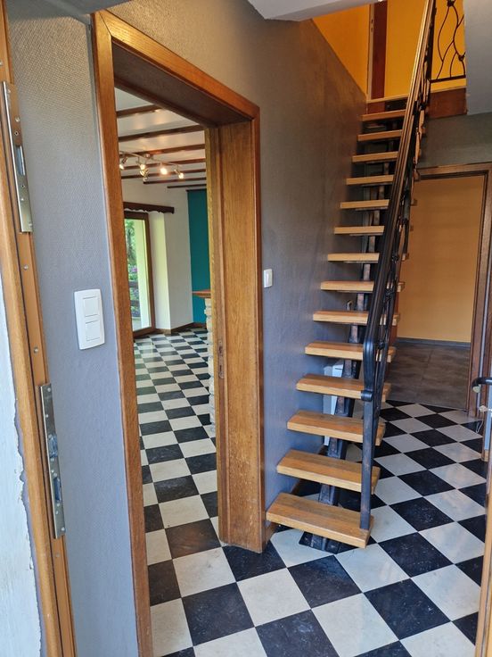 Cette ravissante maison de type chalet est idéalement située rue de Cornicelles n°13 à Chiny, charmant village de Gaume remarquable pour son cadre de vie et ses paysages envoutants. Située aux portes de la Gaume, la ville de Chiny est connue pour son attrait touristique important notamment grâce à la Semois, aux forêts environnantes, au célèbre Festival du Conte, à son centre Adeps ainsi qu’à la proximité de pôles culturels et touristiques.